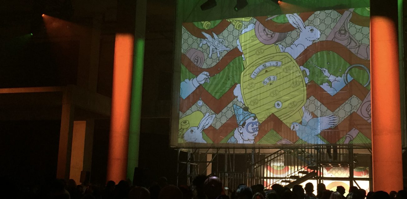 Celebrating the launch of their new ‘Grip’ genderless watch, Gucci hosted a private party at Hawley Wharf in London. The launch was a representation of the collection's aesthetic held in a fluorescent-lit barebones warehouse with projections of street art inspired-campaign images on the walls. The event saw DJ sets by Romy Madley, Kindness and Zakia, along with a live performance by Little Simz.