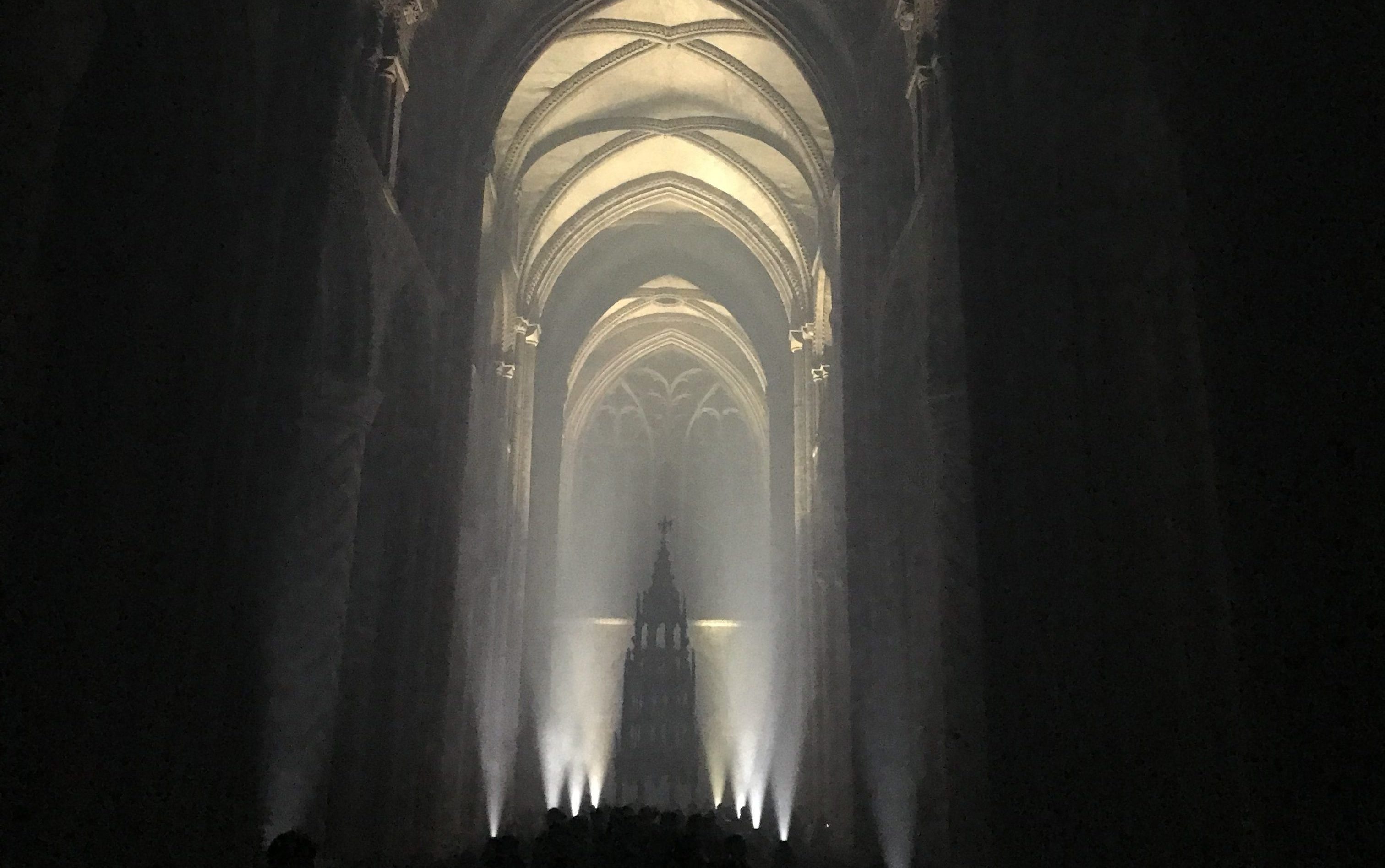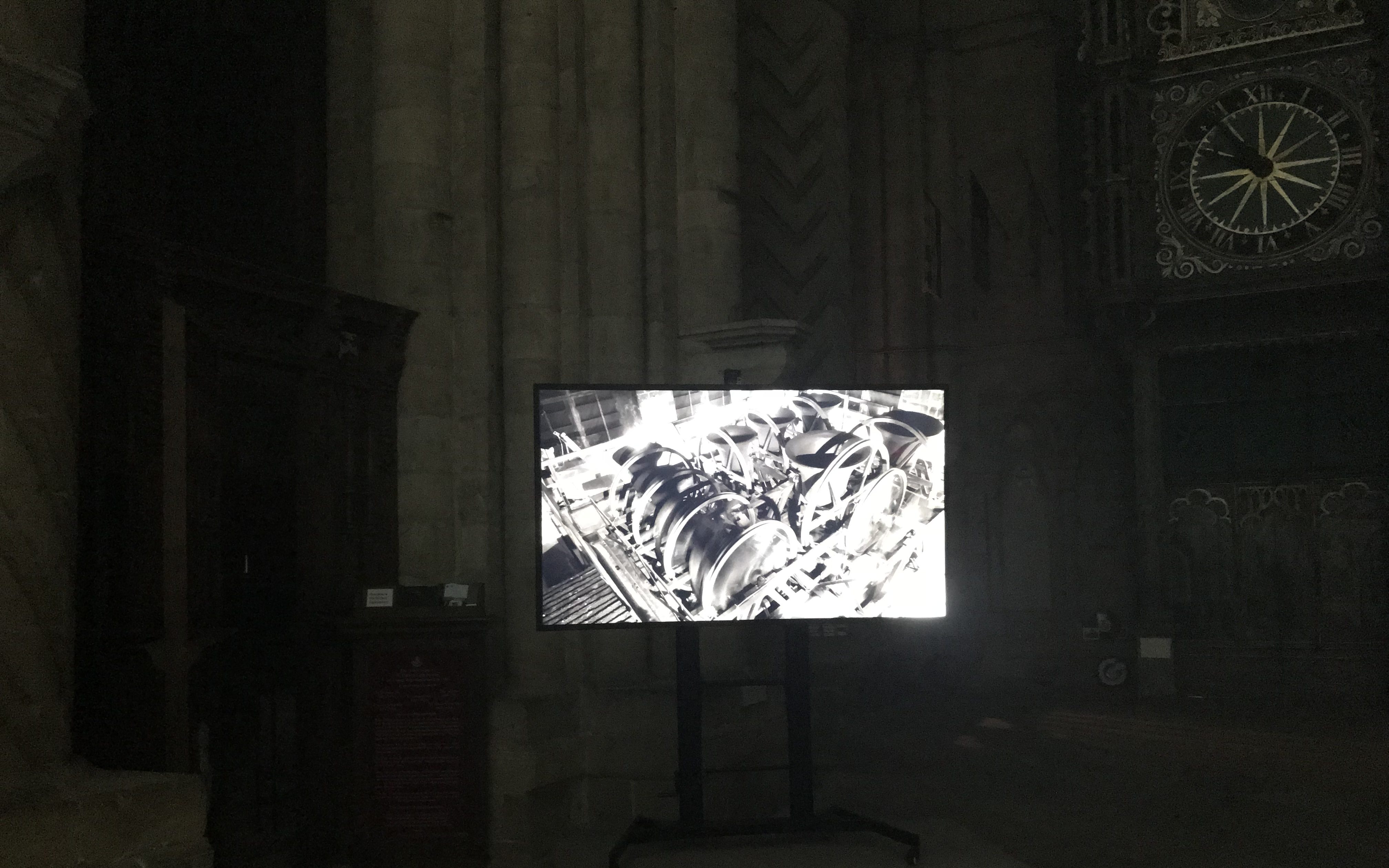 As each bell is rang a different area of the cathedral will be lit up creating a light show that will move in time with the bellringers. ArtAV have installed a camera and six HD screens at the top of the bell tower, the screens are used by the bell ringers to read the score and show them which areas of the cathedral are being lit up. The Camera live streams the bell ringers, in action within the main cathedral on to two 84” panasonic screens so the viewers can see the full performance.