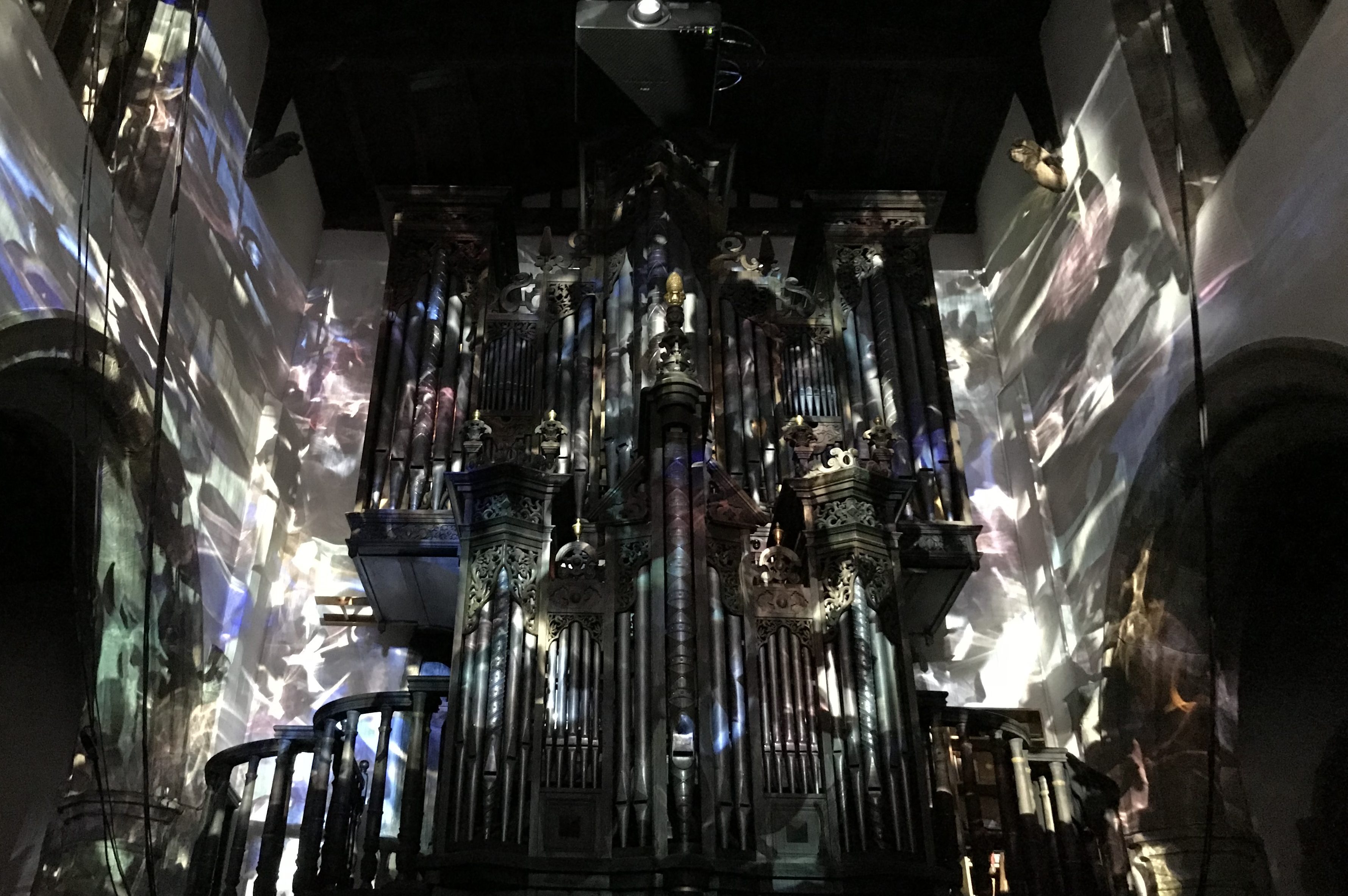 The installation within St Oswald’s church consisted of shards of glass hanging from a truss system at the top of the church. These individual pieces of glass were then illuminated with eight Panasonic PT-VX600 5500 Lumens, creating a universe of colour around the church. ArtAV are responsible for the design of technical install, playback system and the installation of projection.